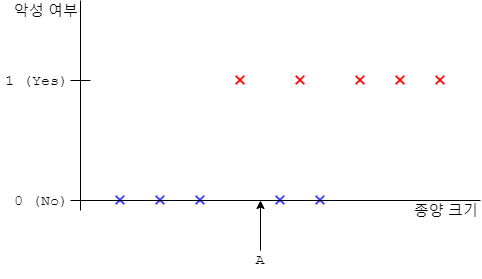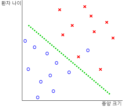 이 문제는 input(크기)이 주어지고 그에 해당하는 label(악성/양성)도 같이 주어지므로 Supervise learning에 해당한다.