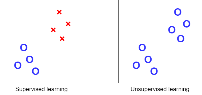 위 그림에서 보다시피 Supervised learning의 경우 label(O/X)되어 있는 반면,