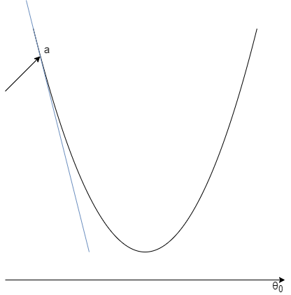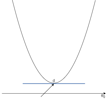 이제 접선의 기울기가 0이 됐다. 접선의 기울기가 0이므로 $\theta_{0}$의 값은 불변한다.