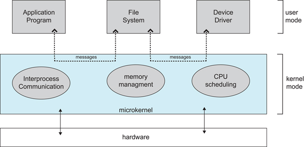 Application program, File system, Device driver 등의 core service를 User mode로 뺌