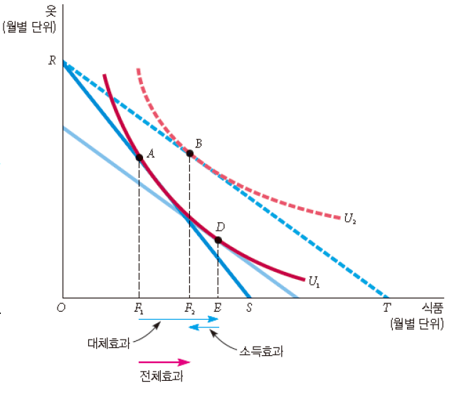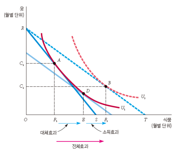-> 무차별곡선 위에서의 이동(∵ 장바구니 구성의 변화)
