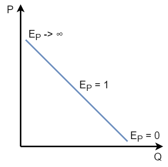 단위탄력적 수요곡선: 모든 가격에 대해 $|E_P| = 1$인 수요곡선