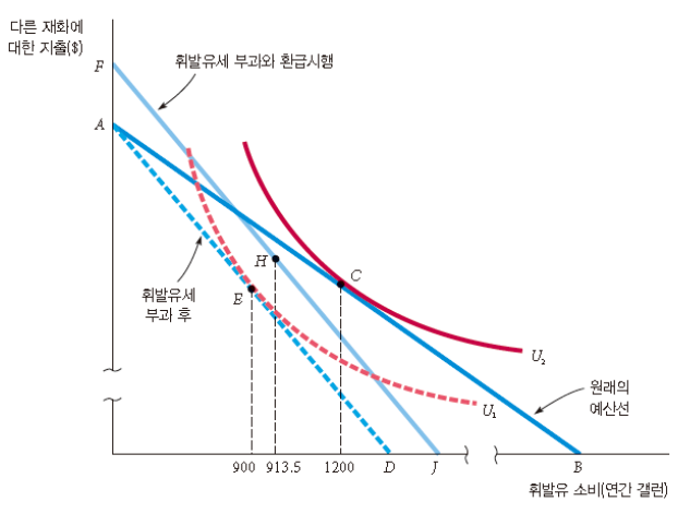 휘발유세를 걷었다가 그대로 환급해도 만족은 원래보다 줄어듦