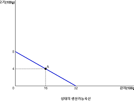 고기 생산을 위해 포기해야하는 감자, 즉 고기와 감자의 맞교환 비율인 것이다.
