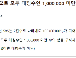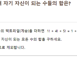 Programming (136) 썸네일형 리스트형 홀짝 판별 1. n % 2 == 0 짝수의 수학적 정의는 '2로 나누어 떨어지는 정수'다. 바꿔 말하면 '2로 나눴을 때 나머지가 0인 정수'이며, 이를 식으로 표현하면 위와 같다. 정의에 입각한 식이기 때문에 통상적으로 쓰이는 방법이다. 2. n&1 == 0 1의 이진수는 00000001이다. 즉 LSB(Least Significant Bit, 제일 오른쪽 비트)가 1이다. 반면 짝수를 이진수로 나타내면 bbbbbbb0이 된다(b는 임의의 비트). 즉 LSB는 무조건 0이다. 즉 1과 짝수의 LSB는 서로 다를 수밖에 없다. 따라서 (짝수) AND 1은 0이 되고, (홀수) AND 1은 1이 된다. $Let\; n\,=\, 13$ $then$ $n\; AND\; 1$ $=\;00001011_{(2)}$ $\;\;.. [Project Euler] Problem 005 이미 푼 문제다.(https://t0pli.tistory.com/49) 근데 풀고 1년 정도 지나서 다시 봤더니 뭔 말인지 하나도 모르겠어서 그냥 다시 풀었다. 1 2 3 4 5 6 7 8 9 10 11 12 13 14 15 16 17 18 19 20 21 22 23 24 import java.math.BigInteger; import java.util.List; import java.util.ArrayList; public class Q005 { public static void main(String[] args) { System.out.println(run()); } public static String run() { List list = new ArrayList(0); for(long i = 1L;.. [Project Euler] Coding Quiz 4 1억 번째 컬럼명만 구하라길래 입력은 따로 안 받았음. 1 2 3 4 5 6 7 8 9 10 11 12 13 14 15 16 public class Q004 { public static void main(String args[]) { System.out.println(run()); } public static String run() { int n = 100000000; StringBuilder sb = new StringBuilder(); sb.append((char)('A' + (((26 + ((n%26) - 1)))%26))); while((n /= 26) > 26) { sb.append((char)('A' + (((26 + ((n%26) - 1)))%26))); } sb.append((char)('.. [Project Euler] Coding Quiz 1 출처가 사이냅소프트 채용퀴즈라길래 뭐하는 데인가 했더니 이 사이트를 운영하는 회사였다. 사이트 첫 페이지(https://euler.synap.co.kr/)에서 확인할 수 있다. 원래는 SW 회사인 것 같고 이 문제를 당사 채용 문제로 출제한 모양이다. 아무튼 나는 이 문제의 더 어려운 버전인 92번 문제를 푼 뒤에 이 문제를 풀었기 때문에 쉽게 풀 거라고 생각했다. 하지만 어림도 없지 ㅋㅋ 1 2 3 4 5 6 7 8 9 10 11 12 13 14 15 16 17 18 19 20 21 22 23 24 25 26 27 28 29 30 31 32 33 34 public class Main { public static void main(String args[]) { System.out.println(run().. [Project Euler] Problem 092 문제가 잘 안 보인다..어떤 자연수에 대해 각 자릿수의 제곱의 합을 구하는 과정을 반복하면 어떤 수든 1이나 89로만 끝나게 되는데, 1천만 미만의 자연수 중에 89로 끝나는 수는 몇 개인지 구하는 문제다. 원래 풀려던 건 이거였다. 92번이 더 어렵다길래 한 번 봤더니 풀 수 있을 것 같아서 그냥 풀었다. 123456789101112131415161718192021222324252627282930public class P092 { public static void main(String args[]) { System.out.println(run()); } public static String run() { int n = 9999999; int count = 0; while(n > 0) { int temp.. [Project Euler] Problem 036 1234567891011121314151617181920212223242526272829public class P036 { public static void main(String args[]) { System.out.println(run()); } public static String run() { int n = 1000000; int count = 0; do { if(isSymmetric(Integer.toString(n)) && isSymmetric(Integer.toBinaryString(n))) { count += n; } } while(n-- > 0); return Integer.toString(count); } public static boolean isSymmetric(String s) { .. [Project Euler] Problem 034 1234567891011121314151617181920212223242526272829303132public class P034 { public static void main(String args[]) { System.out.println(run()); } public static String run() { int count = 0; for(int i = 10; i 0); if(sum == i) { count += i; } } return Integer.toString(count); } public static int factorial(int n) { int res = 1; for(int i = 2; i sum = sum + 3!;temp = 1863/10; -> temp = 186; sum = sum.. [Project Euler] Problem 037 1234567891011121314151617181920212223242526272829303132333435363738394041424344454647484950515253545556575859606162636465666768public class Problem037 { public static void main(String[] args) { System.out.println(run()); } public static String run() { int n = 11; String temp; boolean prime; int sum = 0; int len; for(int count = 1; count Prev 1 2 3 4 5 6 ··· 17 Next